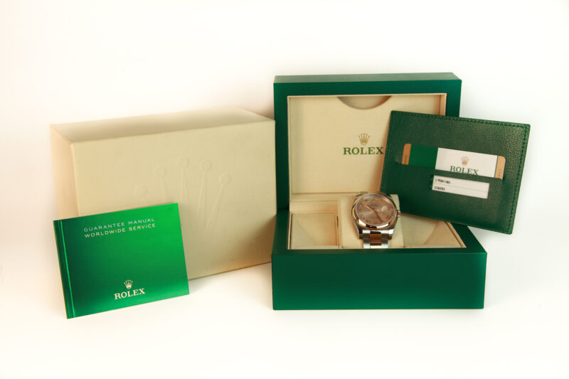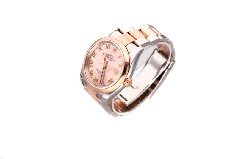 Die Rolex Datejust 116201 mit pinkfarbenem Zifferblatt vereint klassische Eleganz mit luxuriöser Materialkomposition. Das harmonische Zusammenspiel aus Edelstahl und Everose Gold verleiht diesem Modell eine warme und moderne Ausstrahlung. Die römischen Indizes, die feine Sonnenschliffstruktur des Zifferblatts und die charakteristische Zykloplupe über dem Datum betonen den zeitlosen Stil dieser ikonischen Rolex Linie. Im Inneren arbeitet ein präzises Automatikwerk, das für höchste Zuverlässigkeit im täglichen Einsatz steht. Diese Datejust ist ein ausdrucksstarker Begleiter für Liebhaber feiner Uhrmacherkunst, der sowohl im Alltag als auch zu besonderen Anlässen überzeugt.